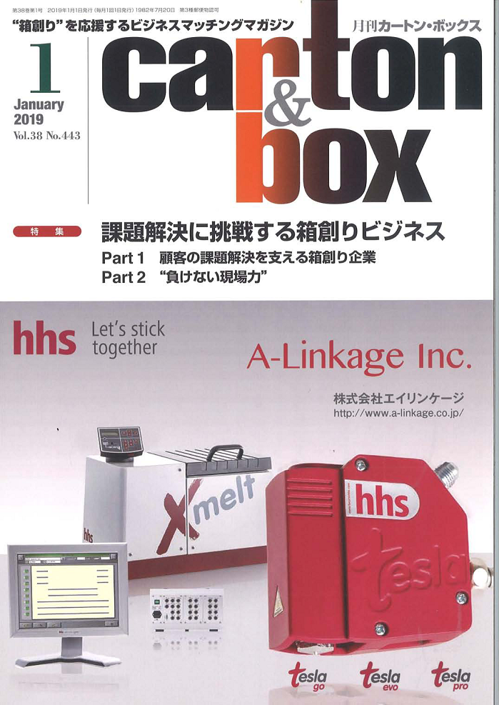 | 2019/01/11 | 月間カートン&ボックスcarton&box 2019年1月号に掲載いただきました |
