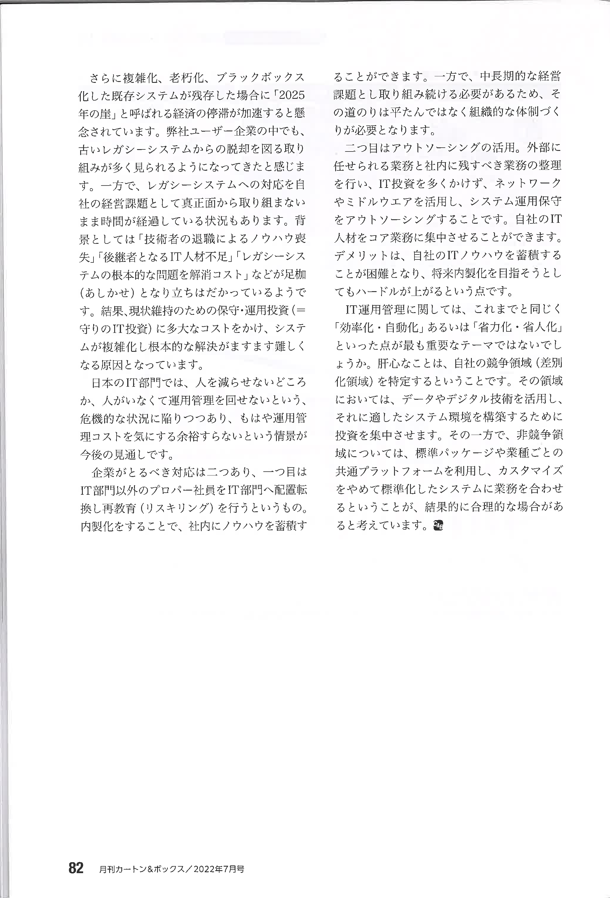 | 2022/07/07 | 月刊カートン・ボックスcarton&box 2022年7月号に掲載いただきました |